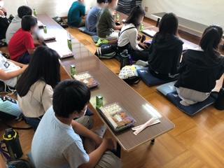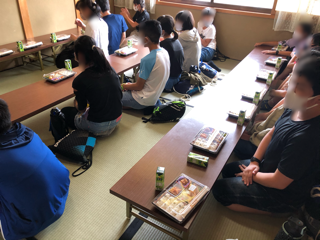 密な状態を避けるため部屋を分散して、向かい合わずに食べます。