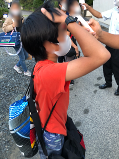 宿舎の方からマスクや消毒、部屋での約束などをお聞きして、体温を計って宿舎に入りました。全員、平熱で元気です。