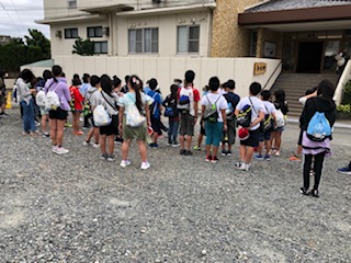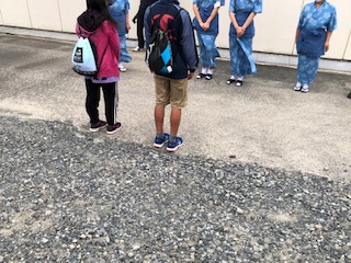 8時30分に子どもたちは元気いっぱいに宿舎を後にしてスペイン村に向かいました。天候はくもりで雨は降っていません。