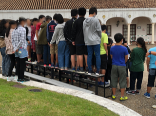 9時前にスペイン村に到着しました。一番乗りでした。雨も降っていませんのでクラス写真と学年全員の写真を撮ることができました。