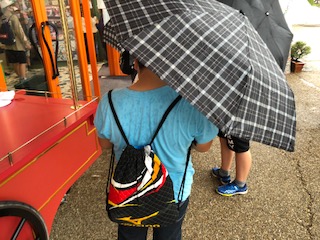 中に入って30分後に雨が降ってきました。傘やレインコートの出番となりました。