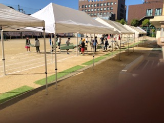 朝の始業前から椅子運びなどの運動会の準備が進めらています。子どもたちもてきぱきと動いています。