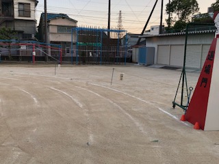 保護者席は講堂前から鉄棒の前、体育倉庫の前あたりとなります。表示がありますのでご確認ください。