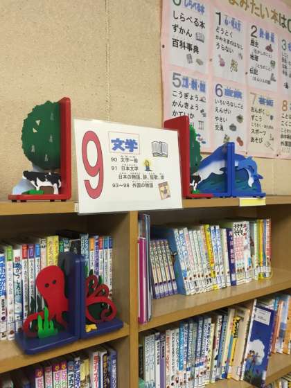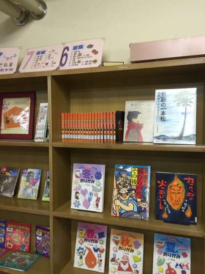 冬休みに地域のボランティアさん方と一緒に、図書の整理をしました。新しい本が約400冊。「アナと雪の女王」「風立ちぬ」などの話題になった本や、妖怪もの、占い、伝記シリーズなどが棚に並んでいます。紙芝居も、増えました。