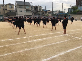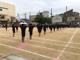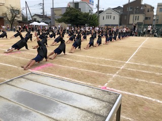 5年生と6年生の団体演技です。はじめに一人一人の体操の演技を行いました。