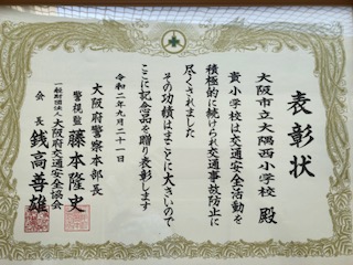 交通安全活動の表彰状