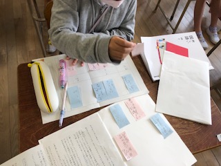 校内での教職員対象の公開授業を行いました。子どもたちが考えたことを付さんにかいてまとめていきました。