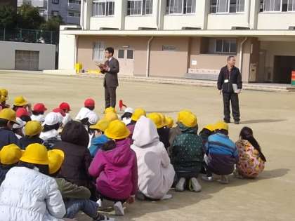 3時間目に避難訓練がありました。安全に気を付けて運動場に避難後、自分の身を守ることについてお話を聞きました。その後、津波を想定して、3階以上に避難しました。真剣に取り組む姿がすばらしかったです。