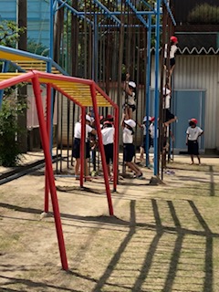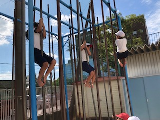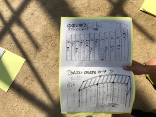 今日は、登り棒にもチャレンジしました、鉄棒と同じように学習カードを使ってめあてをもって取り組みました。
