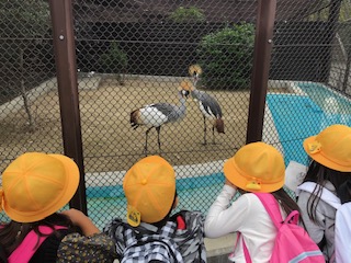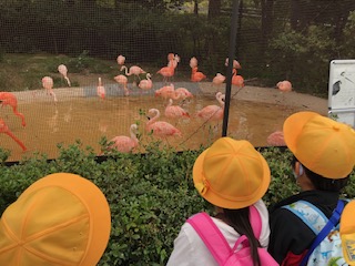 フラミンゴのところでは、子どもたちから「片足で立ってる」の声が聞こえてきました。