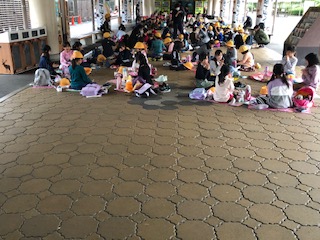 たくさんの動物を見てからお弁当タイムとなりました。雨は降っていませんが屋根の下で11時20分くらいから食べ始めました。