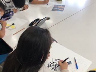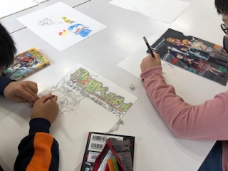 まんが・イラストクラブでは、今、大人気のアニメの絵を描いている児童がたくさんいました。