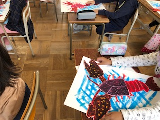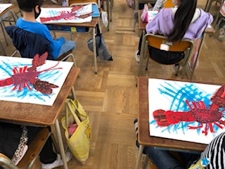 2年生は生活科でザリガニを飼っています。このザリガニをよく見て絵を描いてきました。
