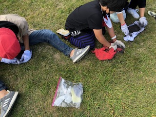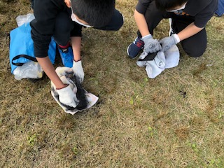 まず、焼き板の上についている炭の部分をこすってとっていきます。焼き板磨きのスタートです。