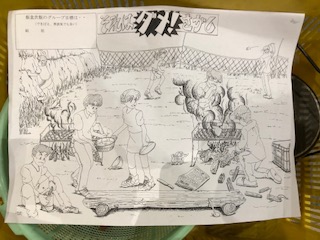 安全に飯ごうすい飯をするために、やってはいけないことを絵を見ながら班のみんなで考えました。