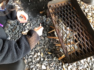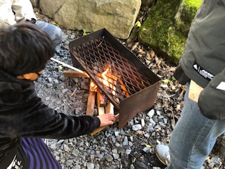 苦労しながら、先生やスタッフの方の手もいっぱい借りながら火起こしに成功していきました。