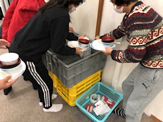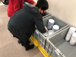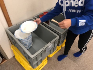 朝食の後にはきちんと食器を分けて片付けていきました。