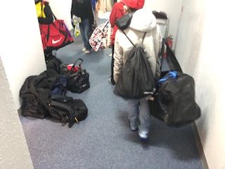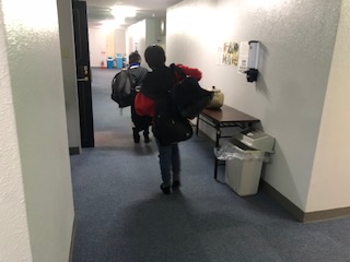 寝具をたたんで荷物整理をして部屋をあとにします。8時には楽しい思い出を作った部屋ともお別れしました。(写真は男子の階です)