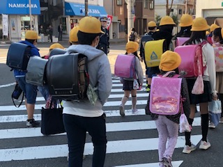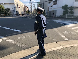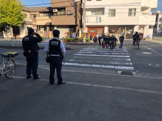 今日は、通学路や校門に警察官の方が立って子どもたちを見守ってくださいました。