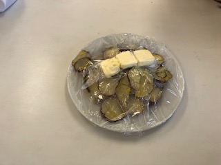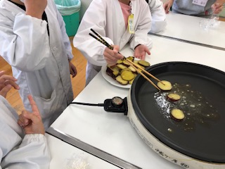 テーブルの上には、ホットプレート、昨日担任が下準備をしたさつまいも、調理に使うバターが置かれています。