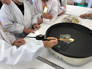 子どもたちは班で協力してバターをしいておいもを並べていきます。