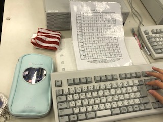 手元にローマ字表を置いて、ローマ字入力をしてから変換しています。