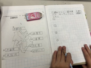 4年生がパソコン室で近畿地方の産業などについて調べています。
