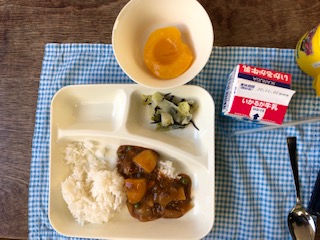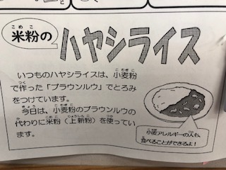 今日の給食のハヤシライスのルウには小麦粉ではなく米粉が使われています。