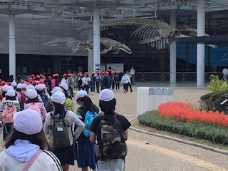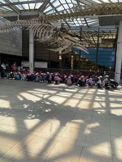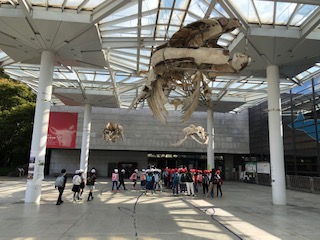 クジラの標本の下で自然史博物館への入場を待ちます。