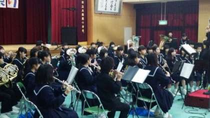 本日、大隅西ふれあい祭りが開催されています。瑞光中学校のブラスバンド部の演奏で幕が開けられました。たくさんの子どもたちが参加して楽しんでいます。