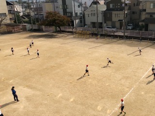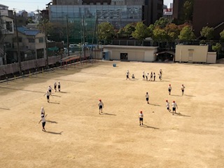 秋晴れの運動場をいっぱいに使って、走る力を伸ばしています。