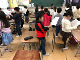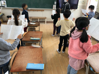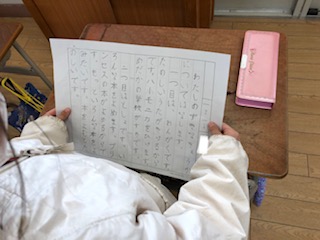 1年生は発表することを原稿用紙に書きました。声を出して読む練習をしています。
