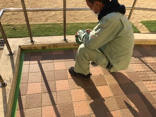 スロープの塗装の塗り替えを予定しています。準備をしているところです。