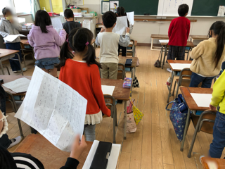 明日の土曜授業での発表に向けて今日はリハーサルを行っています。1年生は何回も発表する練習をしてからリハーサルに臨みました。
