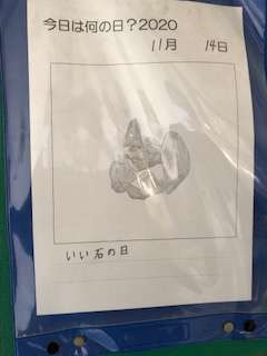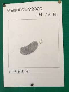 今日は、いい石の日です。新聞委員会の子どもたちの2つの絵が玄関を入ってすぐの廊下に貼られています。ご来校の折にはぜひご覧ください。