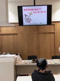 いよいよエコクッキングが始まります。まず、担当の方の説明を聞きます。