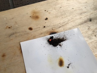 何回も木をこすって見事に火がつきました。