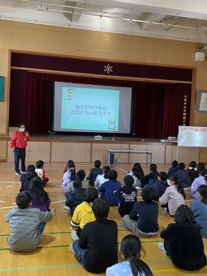 カルビーの方に来ていただき、おやつの適切な取り方などを教えていただきました。