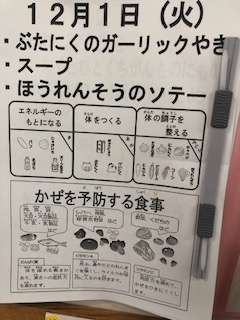 今日の給食カレンダーには、かぜを予防する食事のことがのっていました。