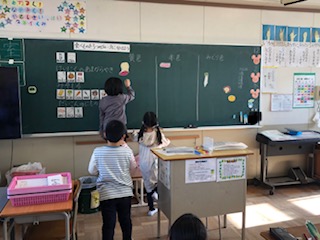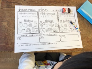 栄養教諭による食に関する指導です。食べ物を赤黄緑の3つのグループに分けて栄養について学んでいきます。