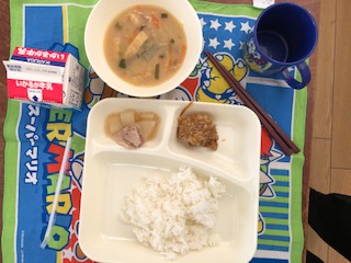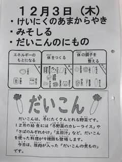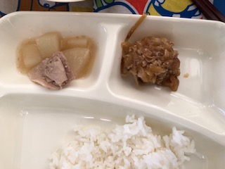 今日の給食には旬の野菜・だいこんの煮物が出ました。