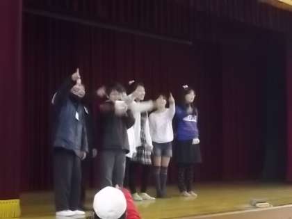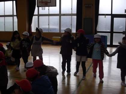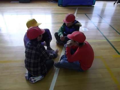 担当の人が言った動物の文字数の人数で集まるゲームです。いろいろな学年が入り混じってグループを作っているところもありました。