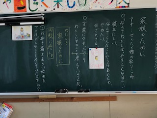 今日の道徳の授業は、「家族のために」をテーマに考えていきました。道徳ノートを友だちと交換してお互いの考えを深めていきました。