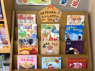 学校図書館には、お正月の本や干支に関する本が展示されています。