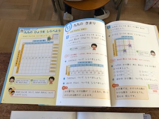 かけ算の九九の表を見て九九のきまりについて考えていきました。
