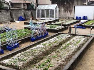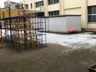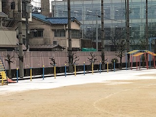朝からの雪が校庭にも積もっています。