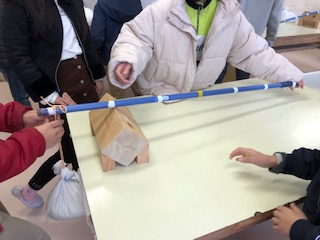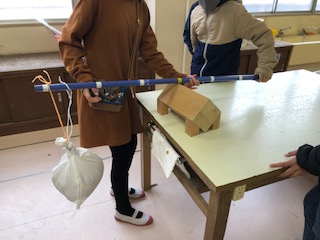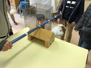 大きなてこを使って、持ち上げる時の重さの違いを確かめていきました。