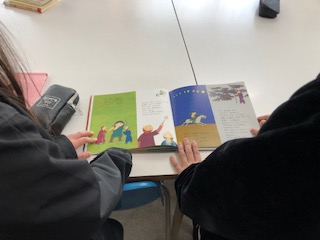 委員会活動では、「今日は何の日?」の内容を調べたり、身近な国に親しむ週間に読み聞かせを行う本を選んだりしていました。