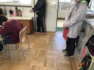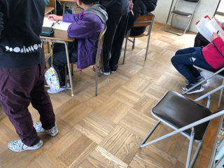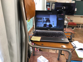 授業研究会の授業には校内の教員も密にならないように人数を制限して参観しています。教育センターの指導担当は、オンラインで授業を見ています。(緊急事態宣言中のため、学校に来ることができないことになっています)