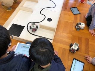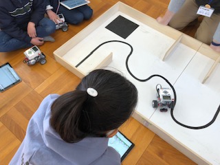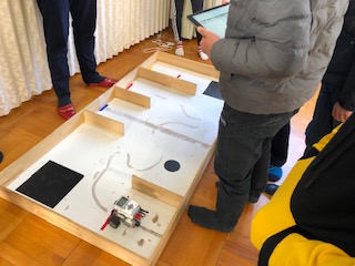 プログラムの修正を繰り返して何度も試していき、だんだんコースに沿って走れるようになりました。